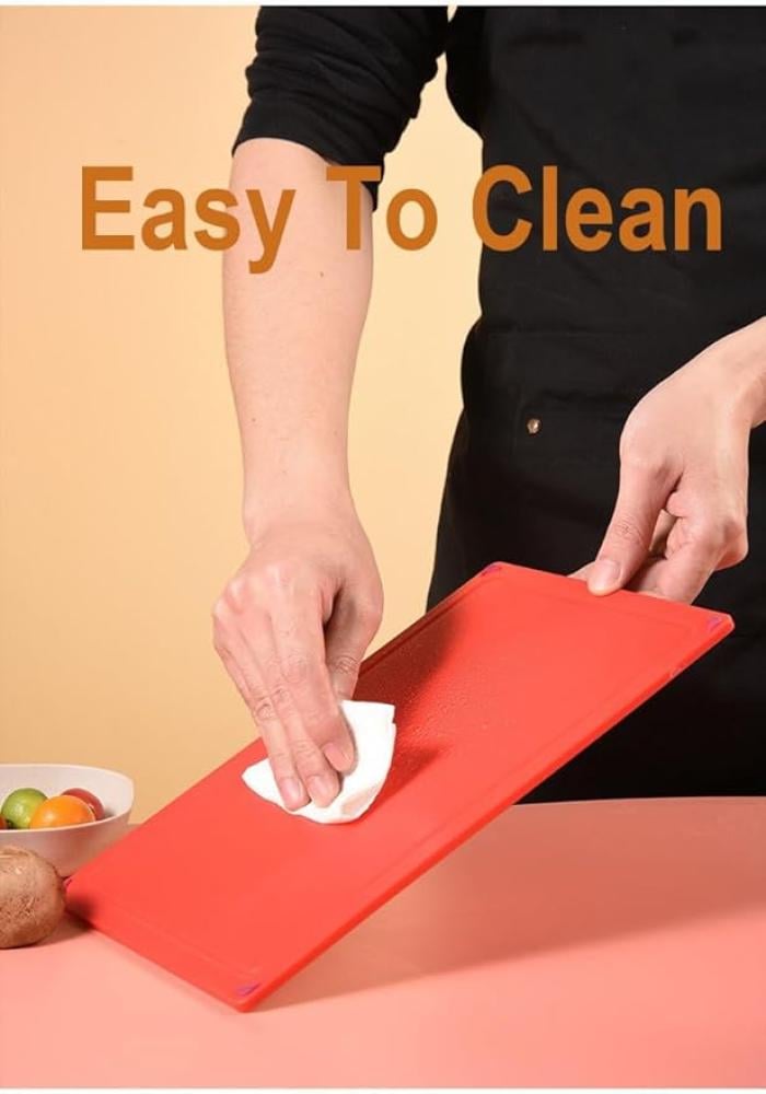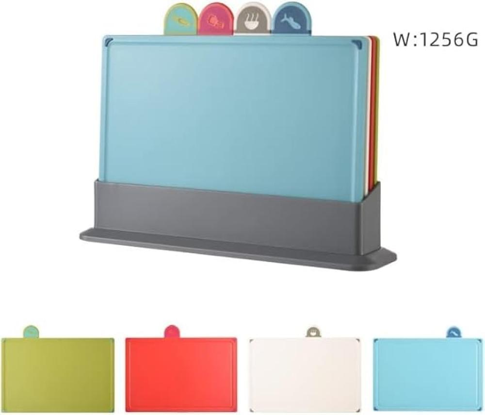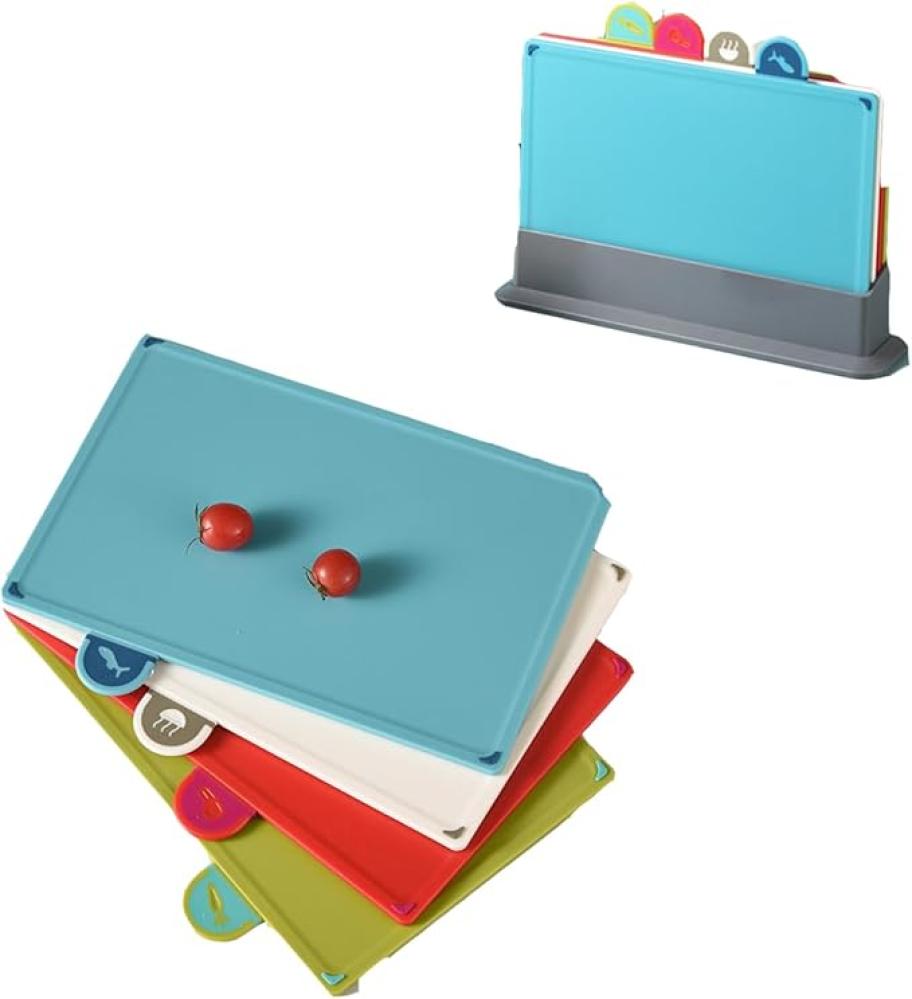 مجموعة بلانشه تقطيع مع حامل تصريف تضم المجموعة 4 ألواح تقطيع متينة مقاومة للانزلاق ومثالية لتقطيع اللحوم والفواكه والخضروات والأسماك وتأتي هذه الألواح مع حامل تصريف لسهولة التخزين والتنظيم في مطبخك.